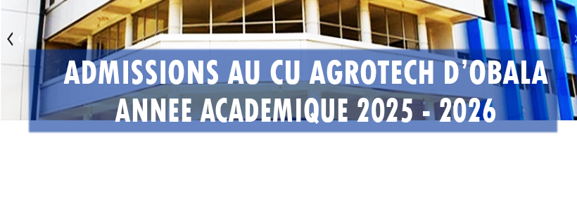 Les candidats admis devront se présenter au service de la scolarité du Centre Universitaire d’Agro-Technologie (CU AGROTECH) d’Obala dès publication des présents résultats pour remplir les formalités d’Inscription. Débuts des cours : Lundi 29 septembre 2025 pour les Niveaux 2 & 5 et Lundi 13 Octobre 2025 pour les Niveaux 1, 3 et 4.